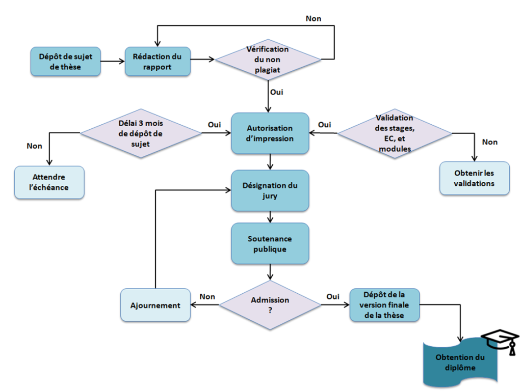 La démarche de pré-soutenance, de soutenance et de post-soutenance est une étape cruciale dans le processus de réalisation d’une thèse jusqu’à l’obtention de son diplôme. Dans ce qui suit, nous examinerons en détail chacune de ces étapes cruciales du processus.